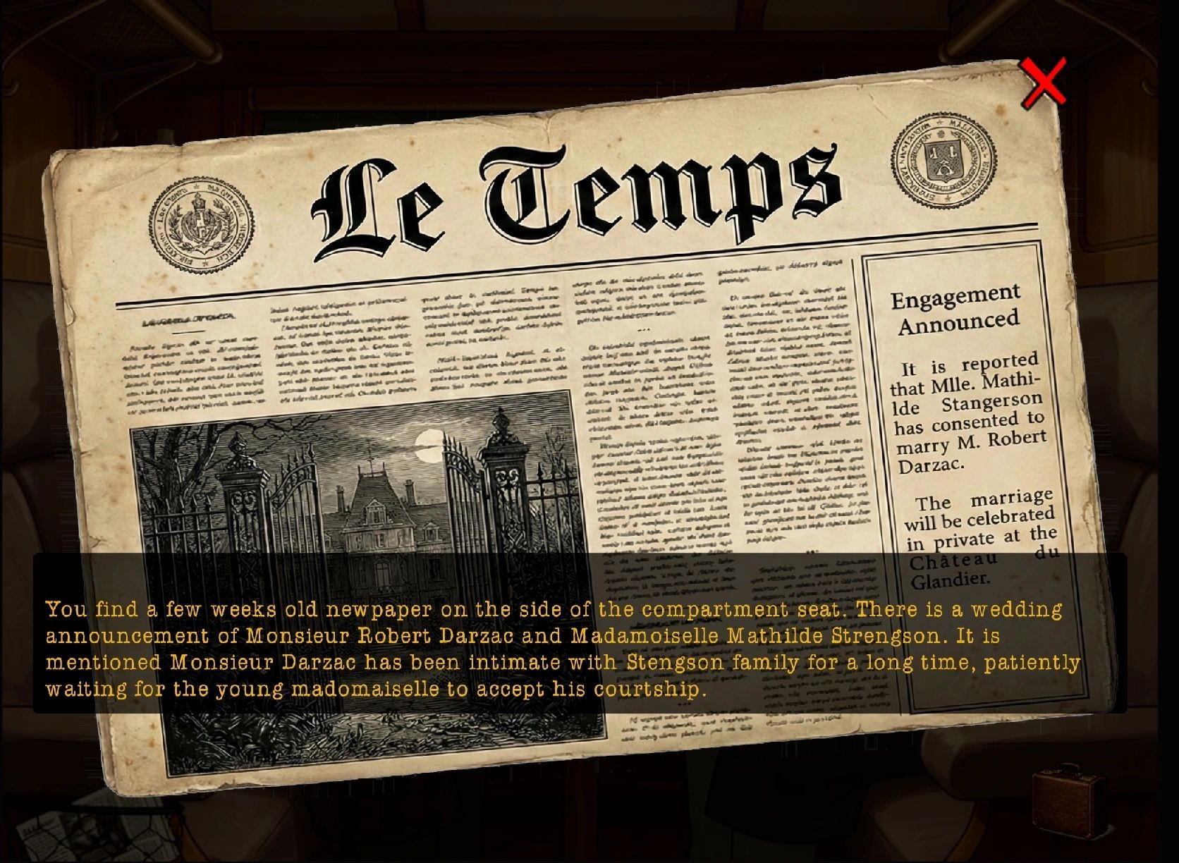 Step into the world of The Mystery of the Yellow Room, reimagined as a richly atmospheric 2D point-and-click adventure inspired by classic 90s titles. Set in the eerie Glandier Château, the game follows Rouletabille as he investigates an impossible crime: a brutal attack in a sealed room with no apparent escape.