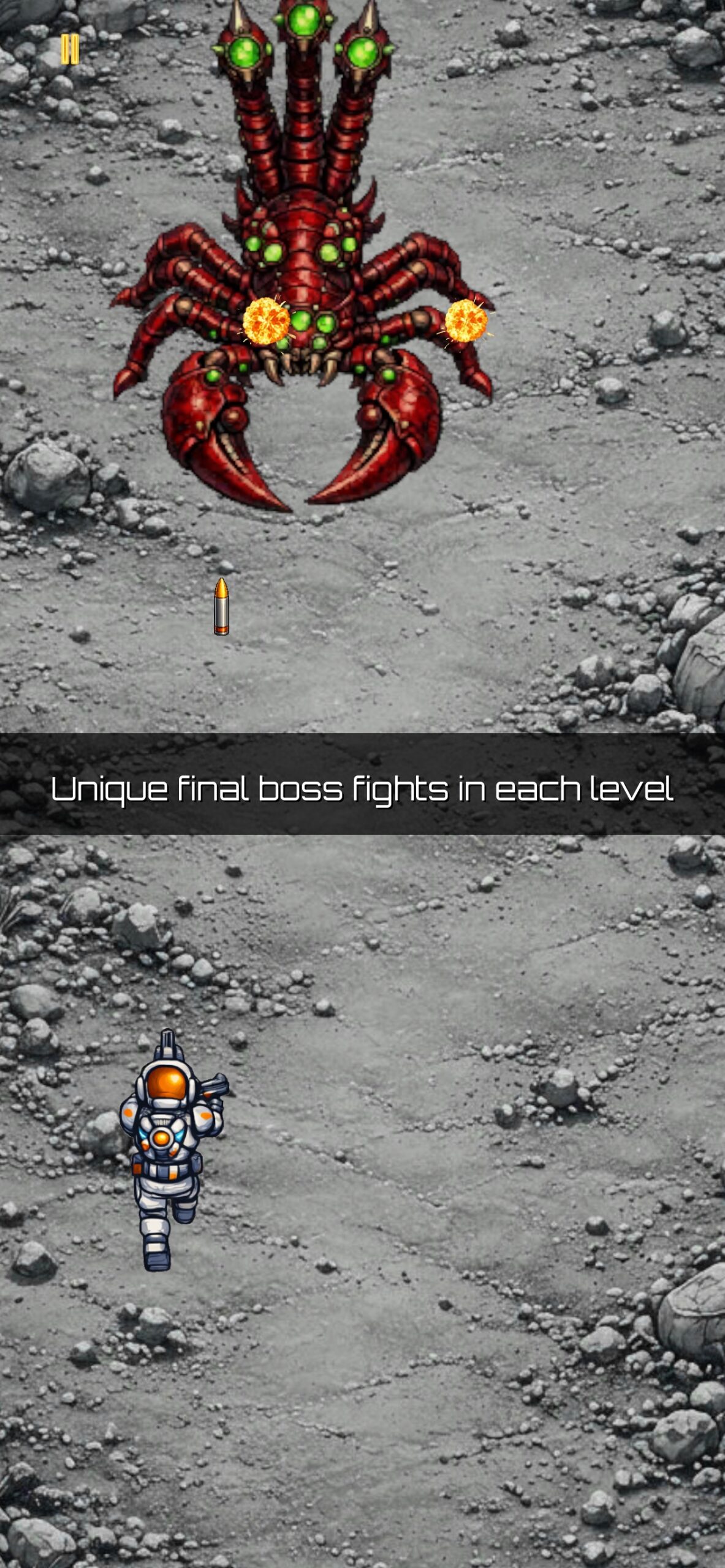 Battle through action-packed levels across exotic alien planets, face relentless waves of sci-fi monsters, and go head-to-head with a unique, devastating boss in every single level. Upgrade your weapons, master each enemy’s attack pattern, and push your reflexes to the absolute limit.
