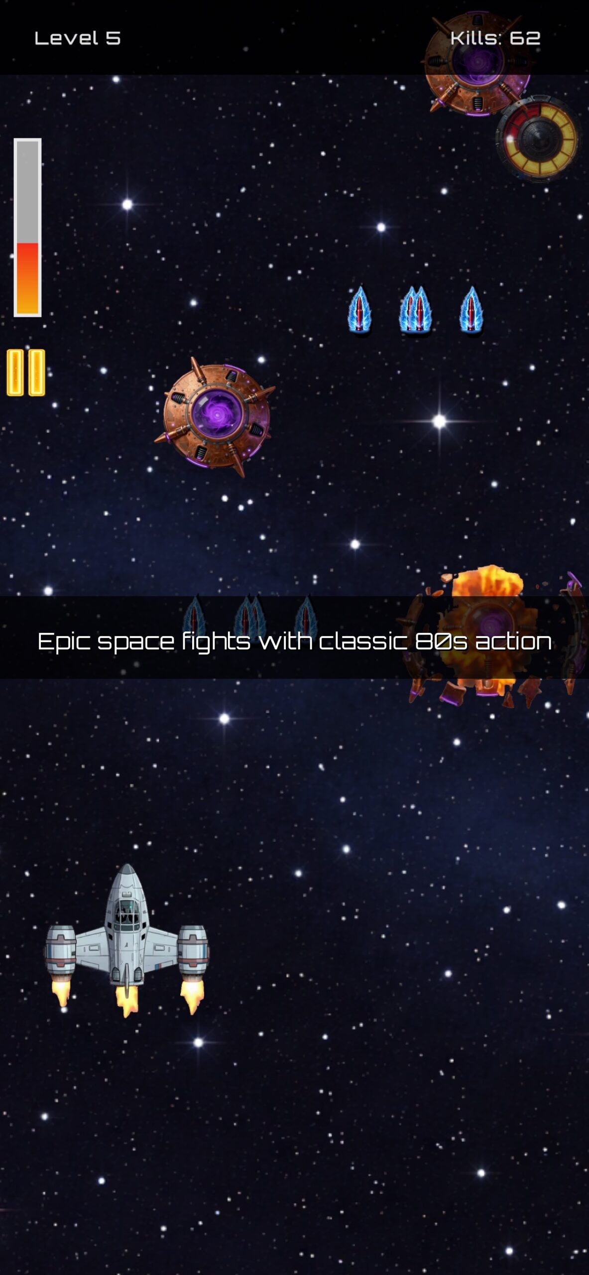– Fast-paced shooting action inspired by classic 80s arcade games